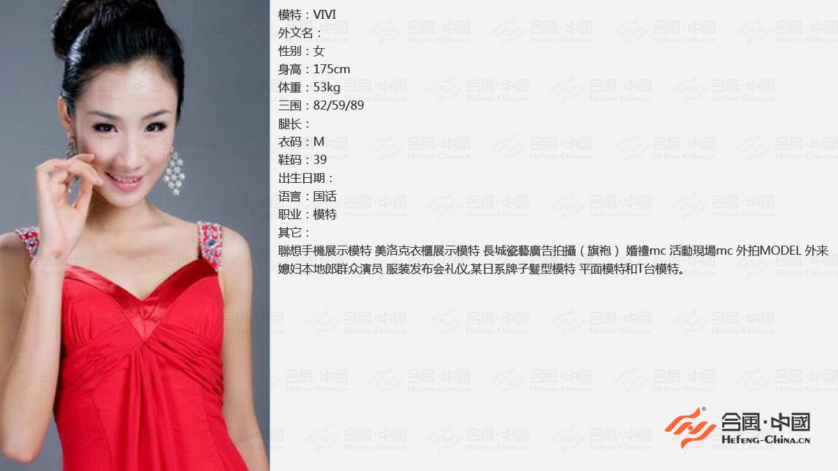 合風(fēng)禮儀模特經(jīng)紀(jì)公司致力于為各大企業(yè)和廣告公司、攝影公司提供最合適的優(yōu)質(zhì)模特及相關(guān)活動(dòng)嘉賓。服務(wù)的行業(yè)有(影視業(yè)、服裝、日化、衛(wèi)浴、地產(chǎn)、櫥柜、電器、食品、太陽(yáng)能、飾品、飲料、藥品、天貓、淘寶、環(huán)保產(chǎn)業(yè))等。公司擁有眾多國(guó)內(nèi)外專(zhuān)業(yè)模特及其他演藝資源。擁有歷屆如“香港小姐”、“世界小姐”、“亞洲小姐”、“新絲路模特”、“中國(guó)好聲音”、“星光大道”、“夢(mèng)想中國(guó)”、“超級(jí)女聲”、“快樂(lè)男生”、“明星模仿秀”等全國(guó)各類(lèi)選美大賽的選手資料。公司與國(guó)內(nèi)外眾多知名企業(yè)、娛樂(lè)經(jīng)紀(jì)公司、知名廣告公司、影視制作公司等有著良好的合作關(guān)系,提供超越客戶期望的服務(wù),做客戶永遠(yuǎn)的伙伴。